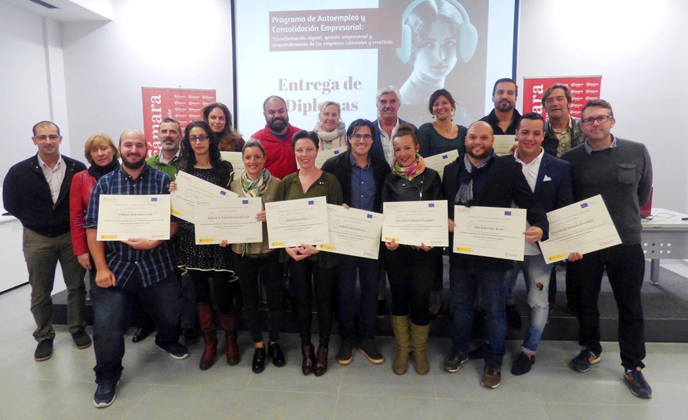 El Programa para la Transformación Digital, la Gestión Empresarial y el Emprendimiento de las Industrias Creativas culminó el jueves a las 18:00 horas con un emotivo Acto de Entrega de Diplomas. El evento, que tuvo lugar en la Cámara de Comercio, contó con la presencia del vicepresidente de la Cámara de Comercio, Neftalí Acosta, y con la Directora de Proyectos de la Fundación INCYDE, Ana Velasco.