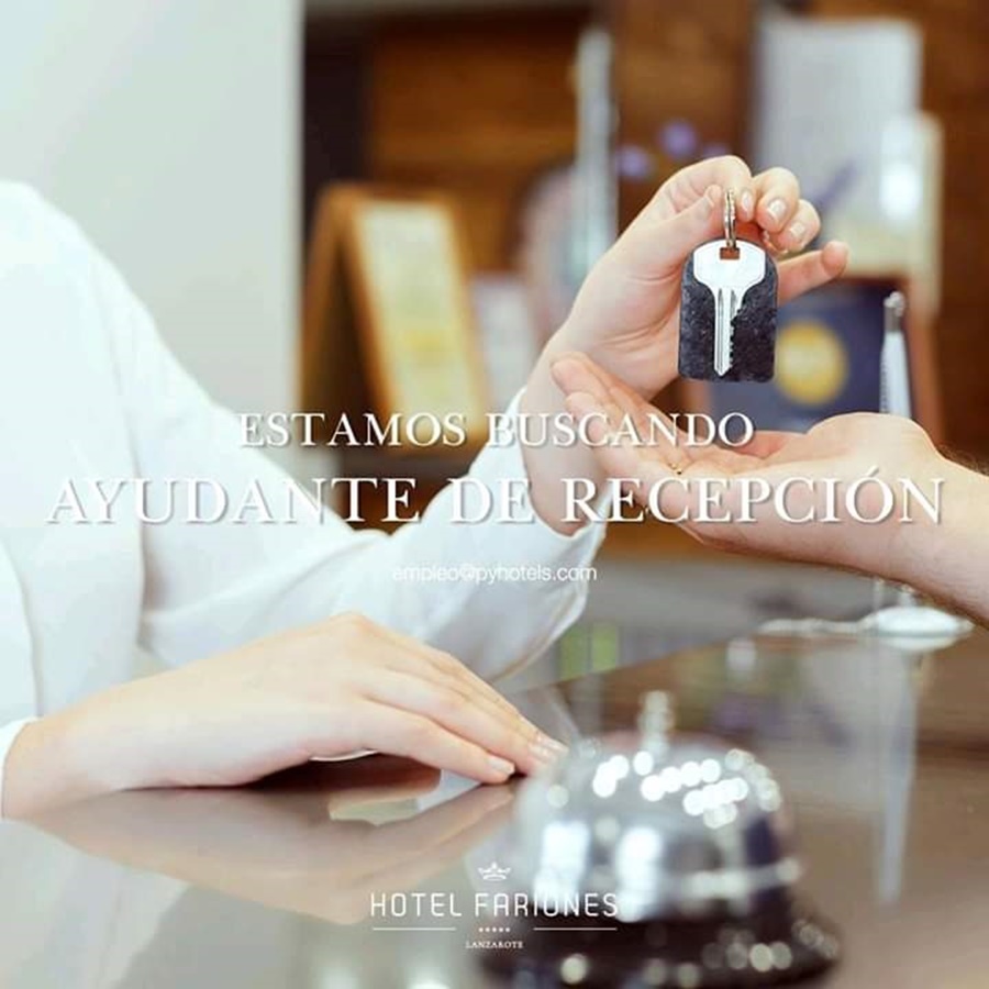 El renovado Hotel Fariones de Puerto del Carmen, de 5 estrellas de categoría, busca ayudante de recepción.