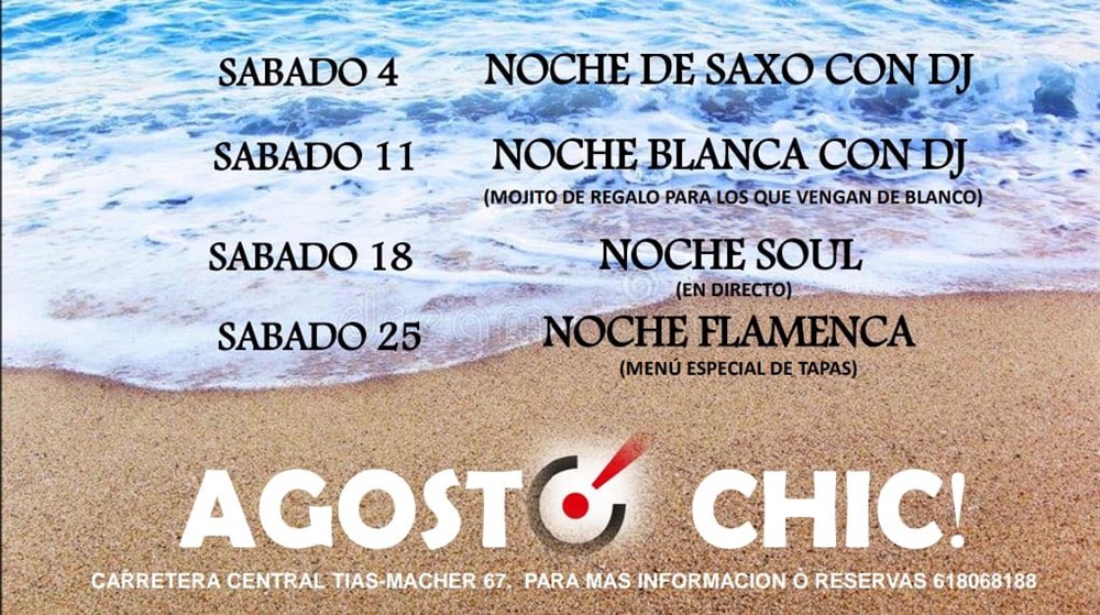 El restaurante Chic!, situado en Macher, celebrará todos los sábados del mes de agosto unas noches tematizadas, en las que la música será protagonista y acompañará al menú durante toda la cena. También nos invitará a movernos un poco más tarde con las copas Y DJ en su magnífica terraza.
