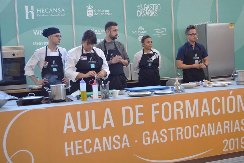 Hoteles Escuela de Canarias (Hecansa), empresa adscrita a la Consejería de Turismo, Cultura y Deportes del Gobierno de Canarias, participó con gran aceptación, en el VI Salón Gastronómico de Canarias, GastroCanarias 2019. El 'Aula de Formación' recibió, en sus tres días de celebración, más de un millar de visitantes. La coctelería de vanguardia, la harina de plátano y las frutas tropicales fueron protagonistas de la docena de demostraciones, talleres y showcooking que se impartieron en el stand para mostrar el modelo de Formación Profesional Dual implantado en su red de centros.