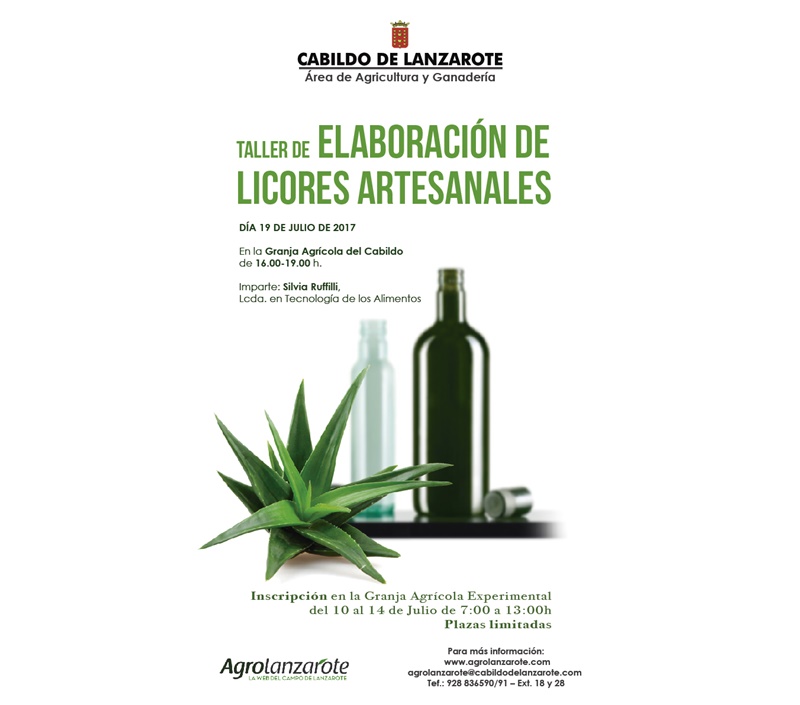 Asimismo, el Cabildo de Lanzarote celebrará el miércoles 19 de julio, también a través del Área de Agricultura y Ganadería, un taller de elaboración de licores artesanales, con plazas limitadas y que impartirá de 16.00 a 19.00 horas la licenciada en Tecnología de Alimentos, Silvia Ruffilli. Será en la Granja Agrícola y Experimental de Tahíche, donde podrán realizarse las inscripciones del 10 al 14 de julio, de 07.00 a 13.00 horas.