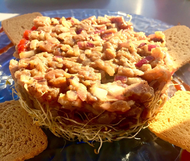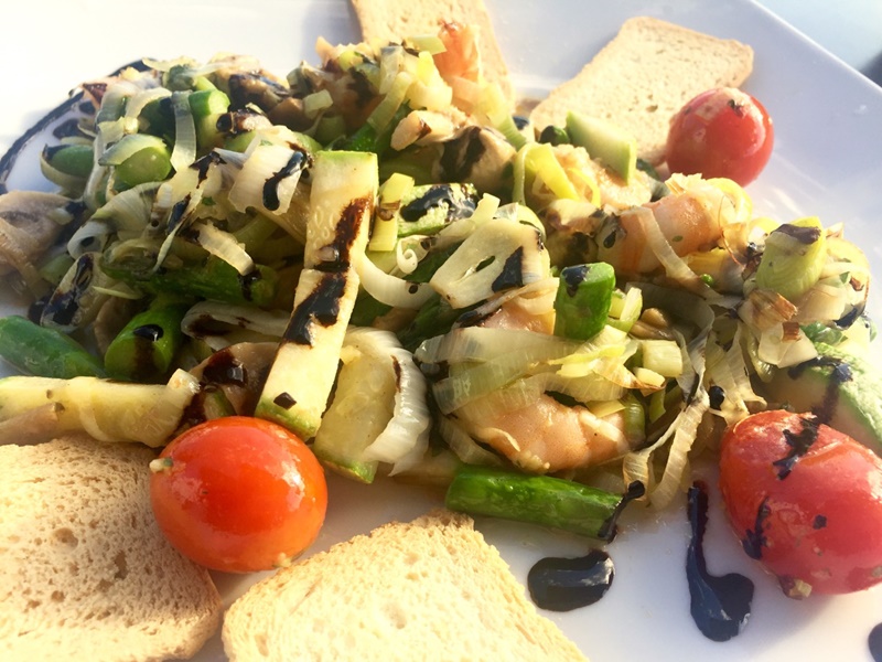 Se puede comenzar por unas croquetas de corvina y perejil o de plátano y jamón. El “Tartar de atún con brotes de alfalfa, cebolla roja y salsa agridulce” y el “Salteado de gambas Jolatero”, con puerro y cebolla pochada, calabacín, champiñón, tomate cherry, espárragos trigueros, laminas de ajo y un sutil aroma de matalauva” son algunos de los entrantes más apetitosos.