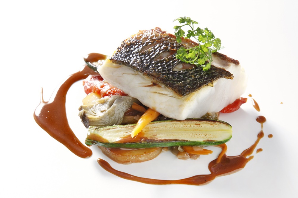 Pescado local según mercado con falso rissoto de hinojo, emulsión de ajo escalivado y esencia de calmar
