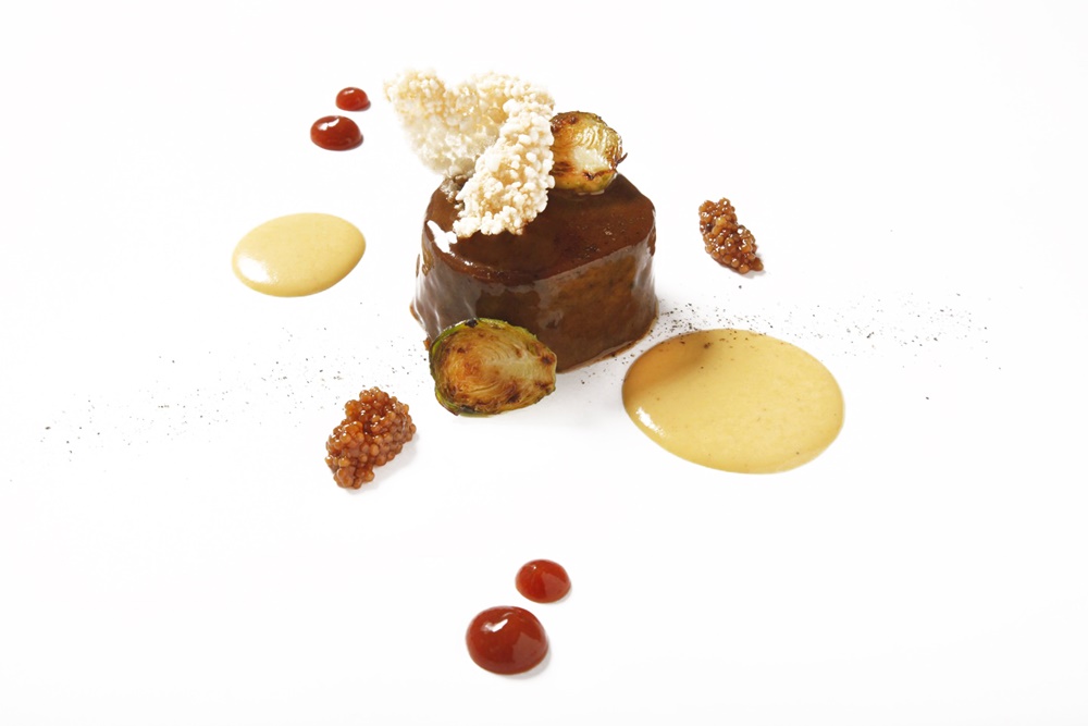 Terrina de cordero de la Finca de Uga, cocido a baja temperatura con texturas de calabaza