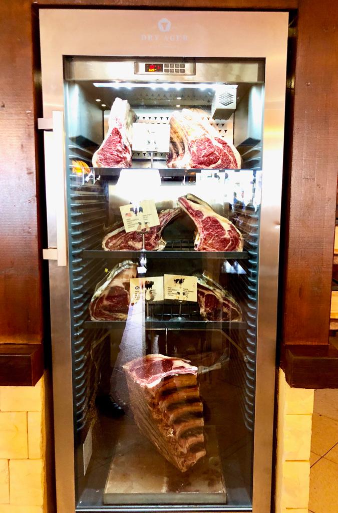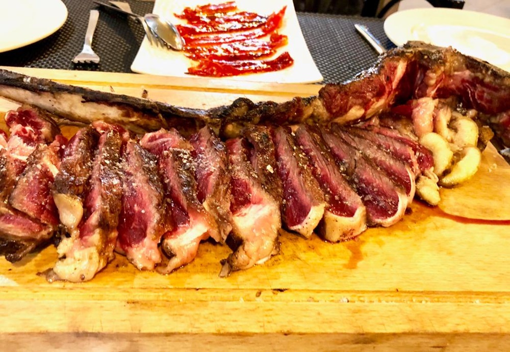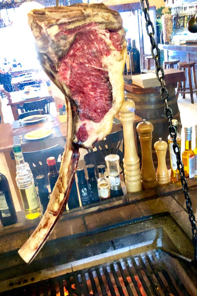 Lo siguiente fue una imponente pieza de carne, un Tomahawk de variedad Rubia Gallega. Es probable que cuando vean las fotos pensarán lo mismo que cuando la vi colgada en el restaurante. Estaba estupenda, jugosa, sabrosa, tierna, una carne sensacional.