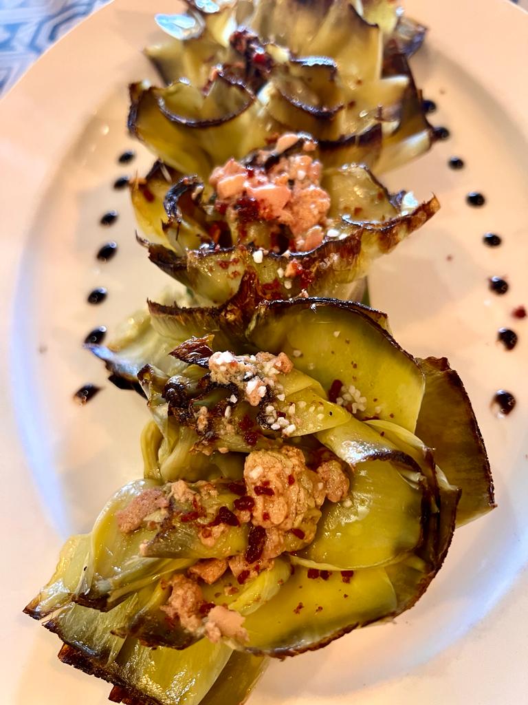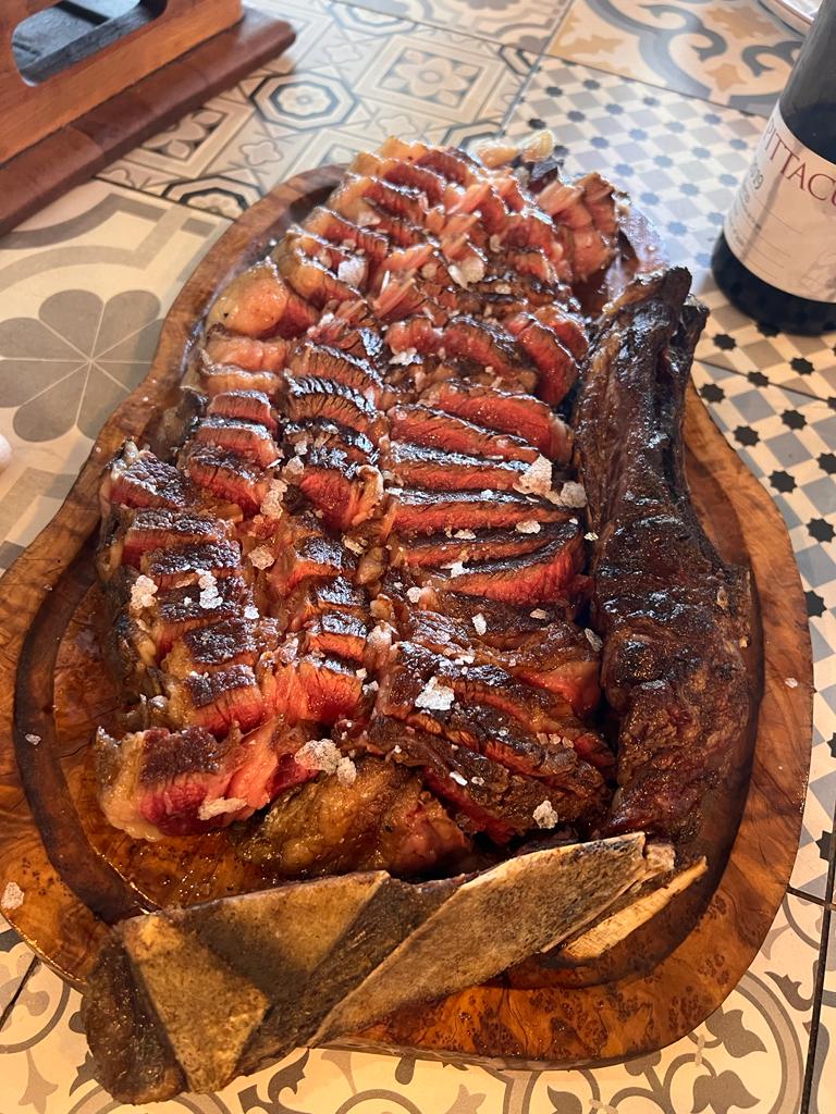 Celebrado con un delicioso menú, en el que por supuesto no podía faltar la “tortilla de Marta”, comenzó la degustación, a la que siguieron unas delicadas alcachofas con Foie, salmorejo con virutas de ibérico, Jalapeños rellenos y un impresionante Chuletón de Black Angus americano, una carne espectacular. El restaurante está especializado en carnes de alta calidad maduradas en cámaras especiales de frío seco. De postre otra de las especialidades, la “tarta de queso casera”, absolutamente deliciosa.