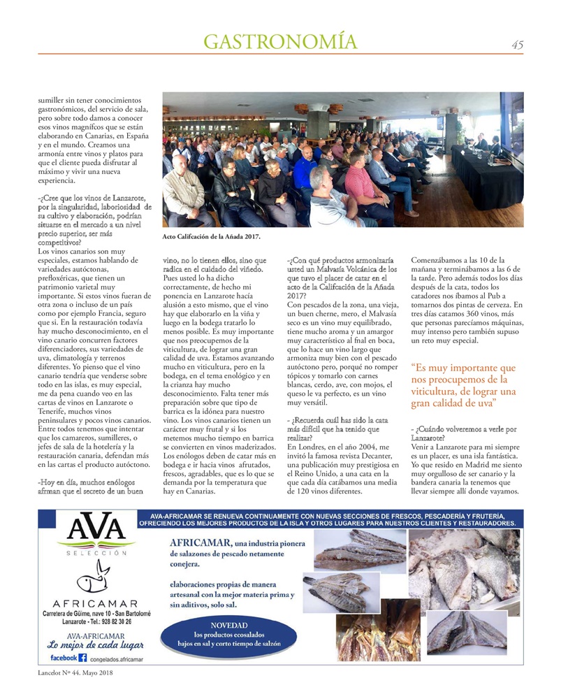 Este artículo corresponde al mes de mayo. Una interesante entrevista con el prestigioso sumiller Javier Gila, presidente de la Asociación Madrileña de Sumillers (AMS). Opina que los vinos canarios son muy especiales, ya que estamos hablando de variedades prefiloxericas..........