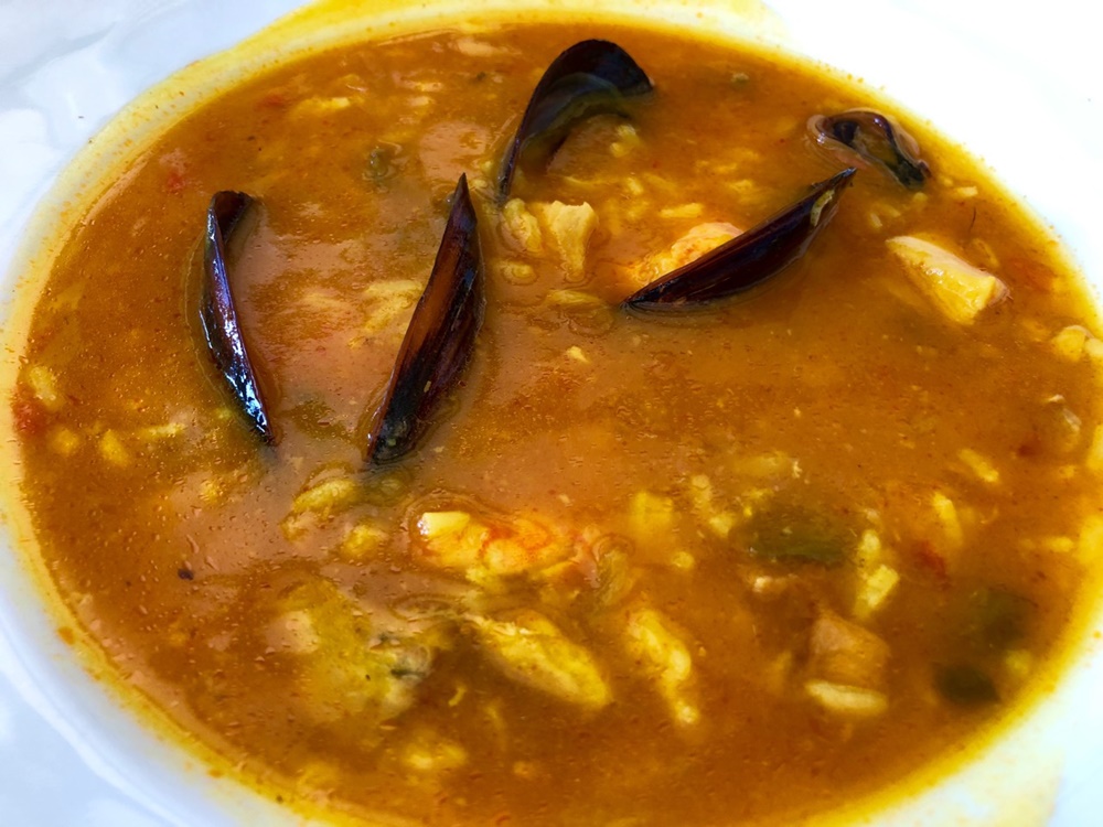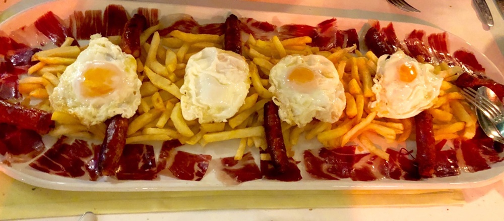 Comenzamos compartiendo gueldes fritos, carpaccio de morena, pulpo en vinagreta, Tartar de atún y unas espectaculares almejas a la marinera por su tamaño sabor y frescura, todo estupendo. A lo que siguió como plato principal un arroz caldoso de marisco, al que no se podía pedir más, sensacional, potente y sabroso (dos platos y alguno hasta un poco más repitió) y con un Malvasía Volcánica de Bermejo, todavía mejor. Postres y una buen sobremesa, que se fue alargando, alargando con la excusa de que bien se está aquí, que vistas tan bonitas de Lobos y Fuerteventura y algún que otro digestivo hasta la hora del partido de la final de la “Copa del Rey”. Y tan a gusto que en el intermedio del partido ya estábamos otra vez, en este caso de merienda cena, con un plato que ha puesto de moda El Majorero: “huevos fritos con papas, chistorra y jamón Ibérico”. Que cosa tan buena, tan sencilla, pero que rico, que bien entra.