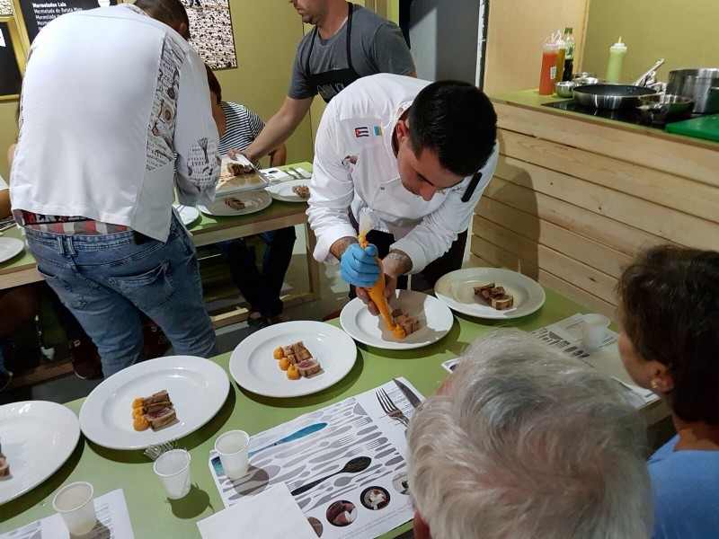 A las 13:30 horas, darán comienzo también los talleres en el stand de Lanzarote que por ser 'isla invitada' tendrá un protagonismo especial en esta cuarta edición de GastroCanarias. A estos dos chefs, les acompañarán otros del Colectivo Lanzarote Cocina, como Rafa Parro, del restaurante el Olivo que, entre otras elaboraciones, llevará unas 'lapas de Lanzarote con espuma de batata y planctón con rocas volcánicas de calamar'; Luis León, chef del restaurante El Toro, que deleitará al público asistente con su 'guiso de tollo en caldo corto sobre crujiente de pan'; y Orlando Ortega, chef del restaurante Lilium, con un 'caldo de millo, batata y pichón'.
