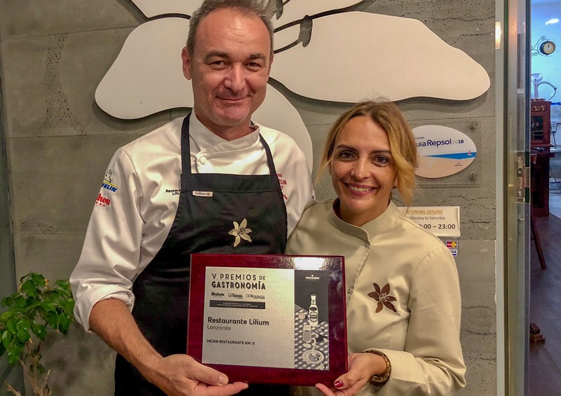 "Defendiendo el producto local en los V Premios Mahou-La Opinión-La Provincia hoy he entregado el premio al mejor Restaurante km. 0, Lilium, de Lanzarote, constatando que cala el mensaje de calidad de nuestros productos, que generan paisaje, economía, medio ambiente y cultura".