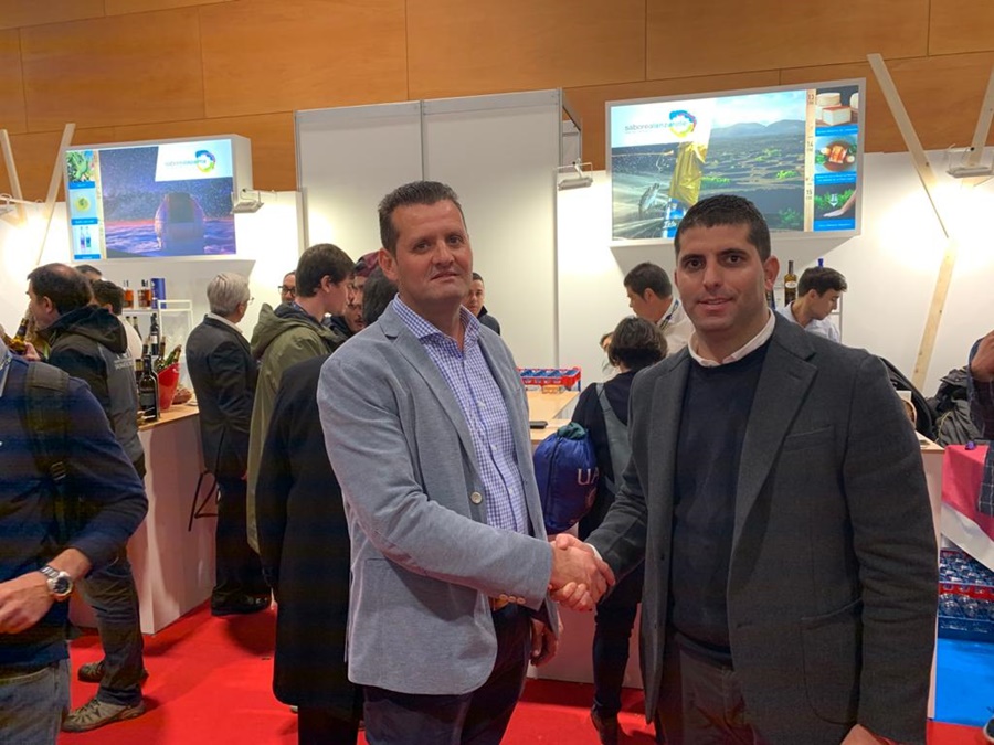 El consejero delegado de los Centros, Benjamín Perdomo, y el presidente del Consejo Regulador de la Denominación de Origen Vinos de Lanzarote, Víctor Díaz, han alcanzado este martes un acuerdo en el marco de Madrid Fusión que permitirá que los restaurantes de la Entidad ofrezcan a sus clientes todas las variedades de vino que se producen en las 19 bodegas asociadas actualmente al ente vitivinícola de la isla en lo que es reflejo de "nuestra apuesta firme y decidida por el producto local y el sector primario de la isla", apunta Benjamín Perdomo.