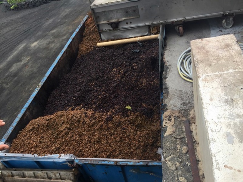 A través del Refractómetro, analizan el grado de alcohol con el que llegan las diferentes partidas de uva que entregan los agricultores. Luego pasa por una mesa de selección manual de los racimos y el despalillado.