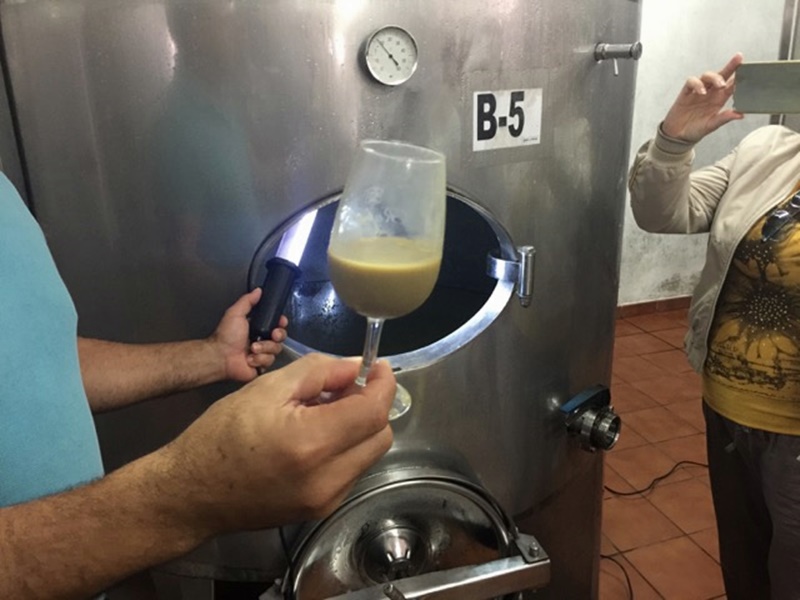 De ahí el mosto limpio pasa a los depósitos de acero inoxidable, donde se lleva a cabo la fermentación, el momento en el que se convierte en vino por el trabajo que realizan las levaduras, controlando los técnicos diariamente, deposito por deposito, su temperatura y densidad. Este proceso puede durar hasta quince días, mientras las levaduras estén trabajando.
