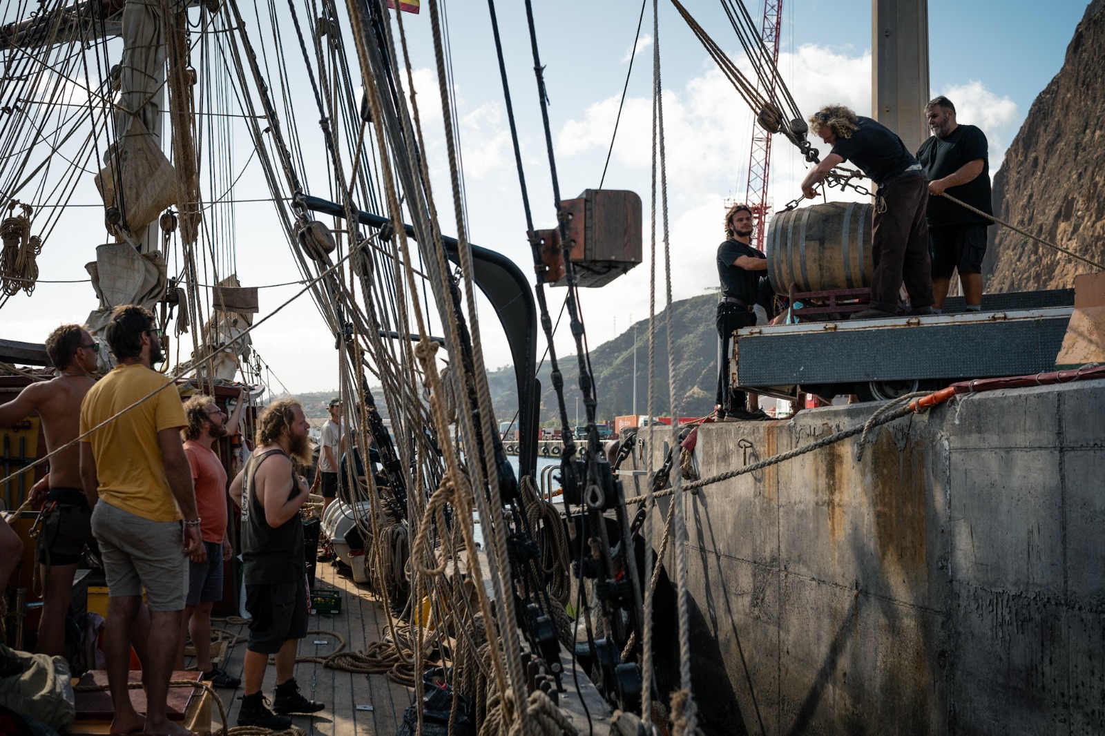 En día de Navidad de 2023, el bergantín “Tres Hombres” recaló de nuevo en el puerto de Santa Cruz de La Palma, para devolver a su propietario la preciada barrica que durante los últimos 12 meses había descansado en las entrañas del velero.