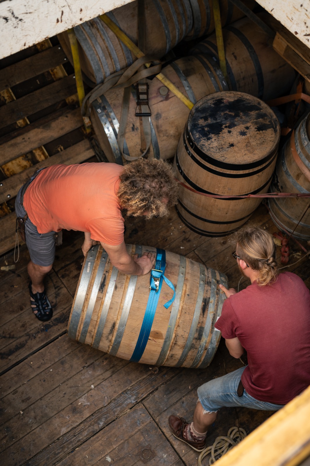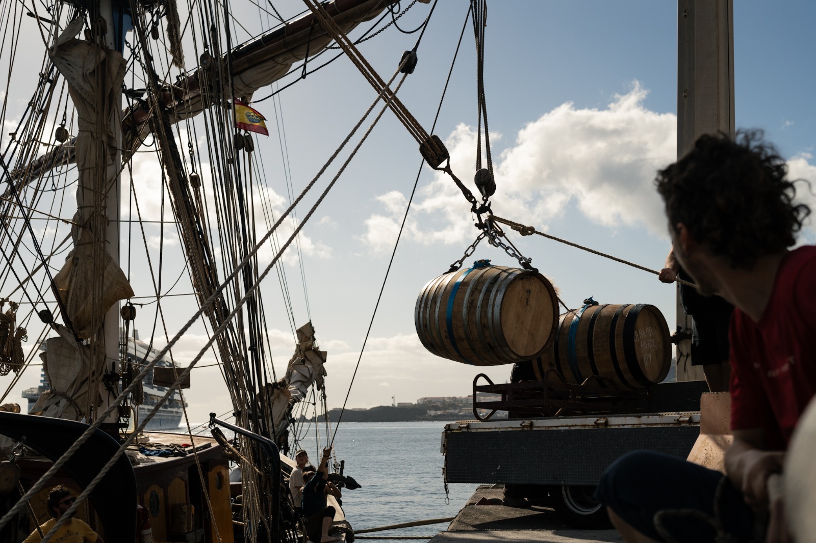 Se da la circunstancia de que durante la escala que el bergantín realizó en la Isla en diciembre de 2022, el maestro ronero y propietario de Destilerías Aldea, José Quevedo, le propuso al capitán embarcar una barrica de ron tradicional de caña de azúcar de La Palma para hacerla madurar durante un año. Expuesta a condiciones cambiantes de humedad, salinidad y temperatura en alta mar en la bodega del buque, la barrica ha estado, además, en contacto con otros productos como café, cacao o tabaco durante todo este tiempo, con el propósito de que se terminara de nutrir de aromas y matices que dieran como resultado un single cask único.