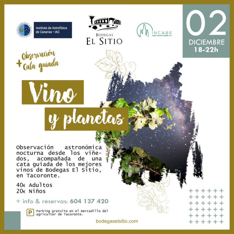 Bodegas El Sitio, ubicada en el municipio de Tacoronte (Tenerife), propone para el próximo viernes 2 de diciembre, una noche de estrellas observando el cielo en plena naturaleza. Un evento que tendrá lugar en un entorno único y siempre acompañados de los grandes vinos de Canarias que elabora esta bodega familiar.