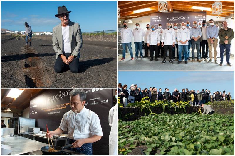 El primer Congreso Internacional de Cocinas y Ecosistemas Volcánicos, organizado por Vocento Gastronomía y el Cabildo de Lanzarote, ha reunido en la isla canaria a una setentena de profesionales entre científicos, productores, cocineros y periodistas, que han asistido en 3 días a un total 20 ponencias y mesas redondas celebradas en 4 localizaciones extraordinarias de la isla (entre ellas, el apabullante auditorio de la intervención de los Jameos del Agua o la sala con vistas del Mirador del Río), compaginadas con 6 experiencias gastronómicas en otros tantos restaurantes (entre ellos El Diablo, el único restaurante de la isla donde se cocina directamente con lava volcánica). En ellos han participado 25 cocineros eminentemente lanzaroteños, pero también invitados de distintas zonas volcánicas del mundo que se han entendido para erigir cuatro manos únicos. "El contacto entre profesionales nutre", repetía el geólogo Joan Martí. Era el objetivo.