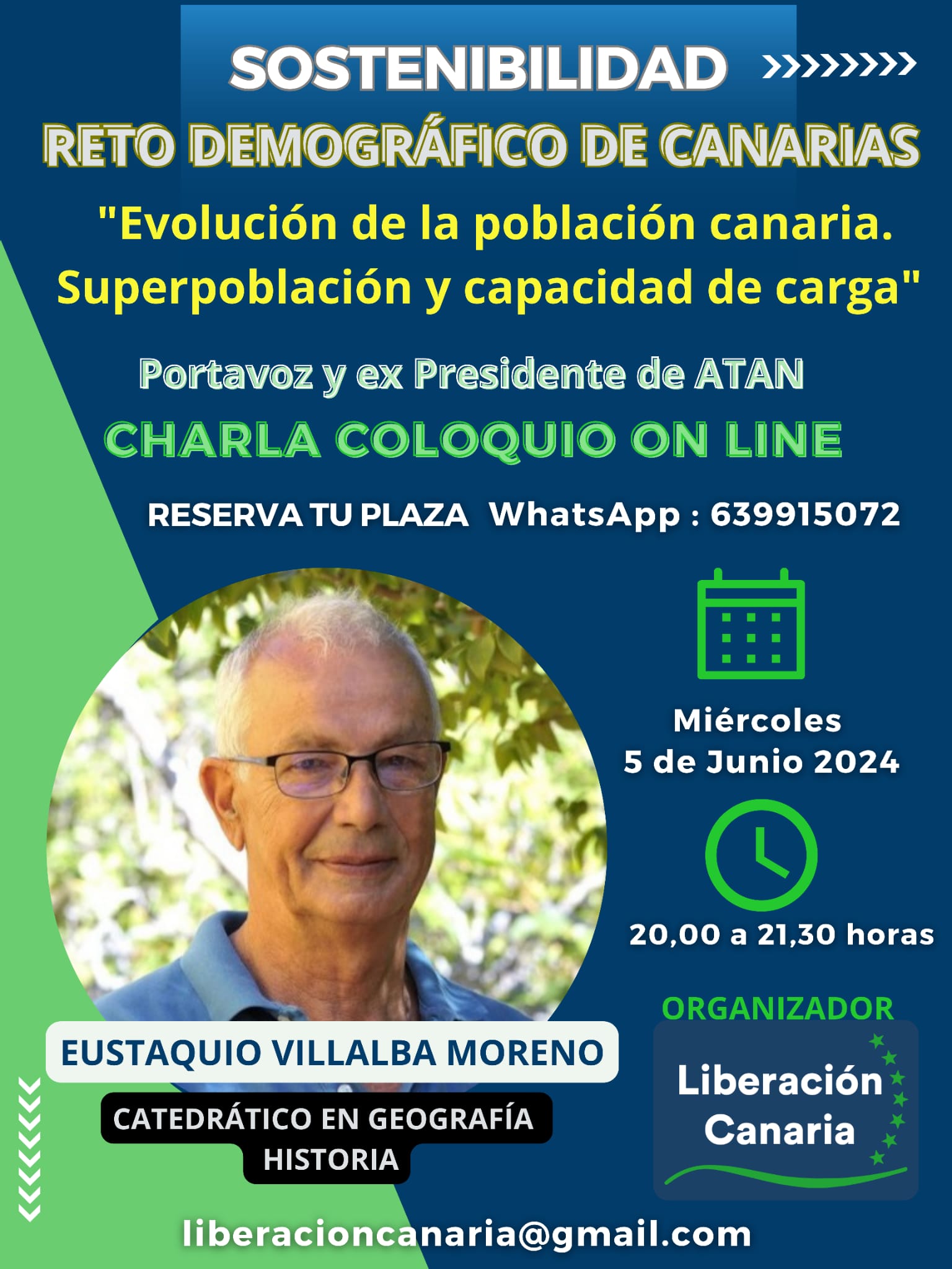 Villalba impartirá este miércoles 5 de junio una charla- coloquio para abordar el reto demográfico con perspectiva histórica bajo el título "Evolución de la población canaria. Superpoblación y capacidad de carga".
