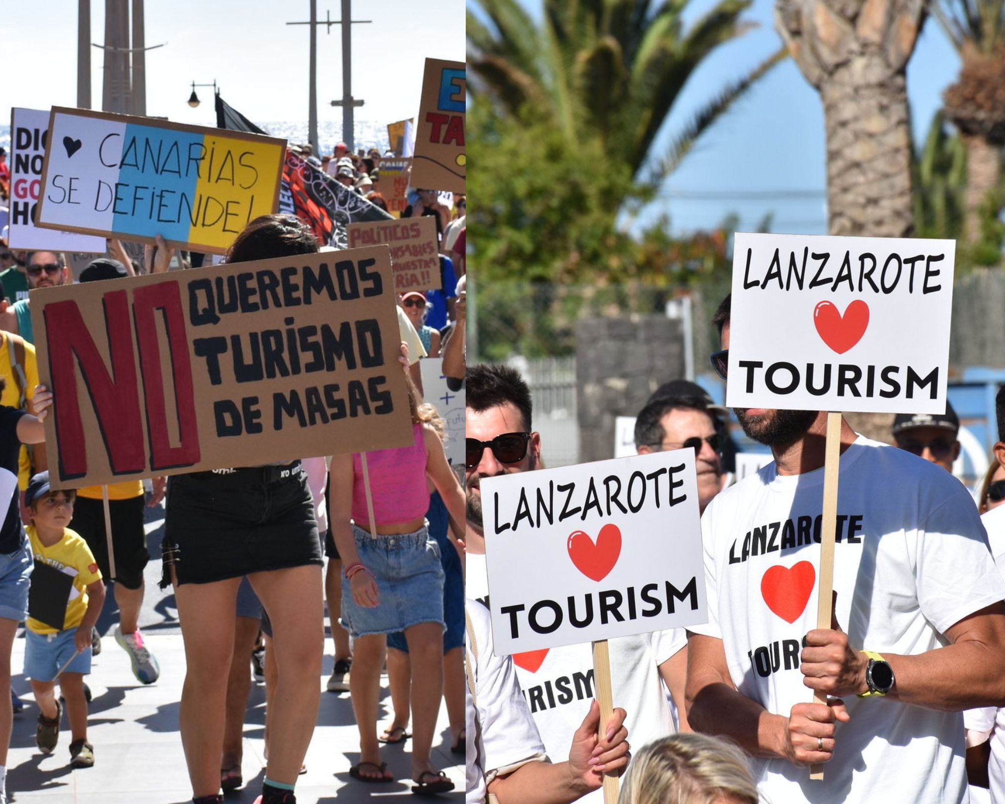 "Lanzarote tiene un límite" reúne a cerca de 1.500 personas en Puerto del Carmen por el 20 de octubre, mientras "Lanzarote love Tourism" realizó el mismo recorrido con un centenar de personas.