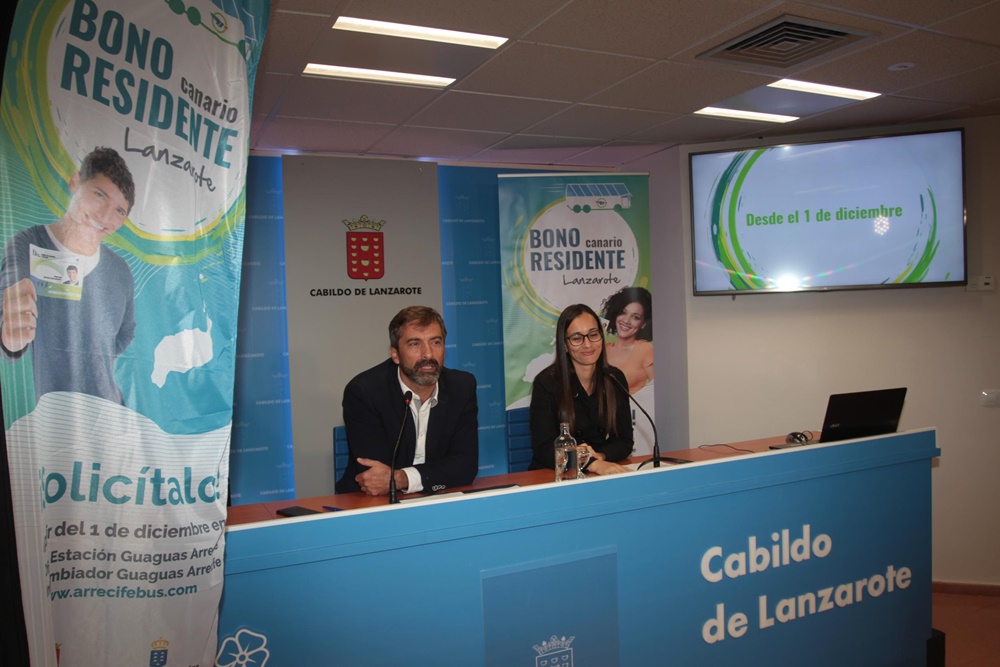 "Un bono que tendrá un precio de 20 euros, con validez mensual y viajes ilimitados para el transporte interurbano de viajeros de toda la isla y también para los usuarios de las guaguas del transporte regular de viajeros de Arrecife, gracias -en este último caso- al convenio que se firmará entre el Cabildo y el Ayuntamiento para que todos los ciudadanos de la isla se puedan beneficiar sin exclusión de estas condiciones tan ventajosas y del abaratamiento del precio del billete", informó el presidente del Cabildo, Pedro San Ginés, durante el acto de presentación del bono en el que estuvo acompañado por la consejera de Transportes y Movilidad de la Institución, Patricia Pérez.