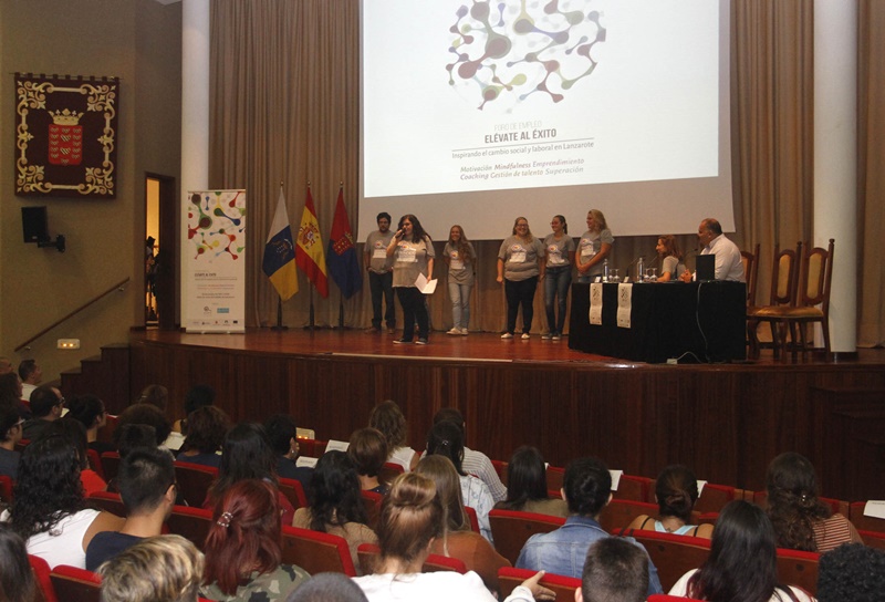 Alrededor de 300 personas se dieron cita en el Salón de Actos del Cabildo de Lanzarote para asistir a la celebración del Foro de Empleo 'Elévate al éxito. Inspirando el cambio social y laboral en Lanzarote', organizado por los jóvenes participantes en la Lanzadera de Empleo de Lanzarote, una estrategia de lucha contra el desempleo juvenil impulsada por la Fundación Santa María la Real, Fundación Telefónica y el Cabildo de Lanzarote, con la colaboración del Gobierno de canarias y la cofinanciación del Fondo Social Europeo.