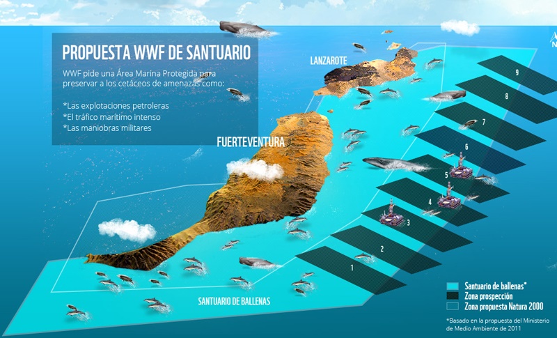 "Las aguas marinas del oriente y sur de Lanzarote y Fuerteventura constituyen un exponente único para los cetáceos en Europa, albergando más de la tercera parte del total de especies conocidas en el mundo. La excepcional abundancia y diversidad de cetáceos registrada, con la destacada presencia de poblaciones residentes de diversas especies de profundidad como zifios, calderones y cachalotes, raras y poco conocidos globalmente, hacen de este peculiar enclave del Atlántico el más importante de la Unión Europea para ballenas y delfines y uno de los más relevantes a escala mundial, vital para la reproducción, alimentación y paso migratorio de hasta 29 taxones estrictamente protegidos por la legislación europea y nacional", concluyen desde WWF.