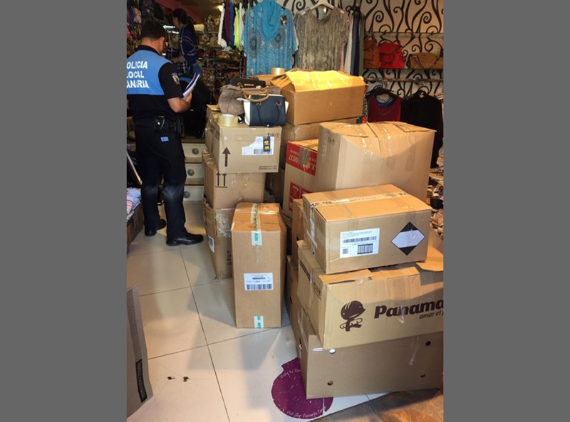 La Policía Local de Yaiza intervino el pasado viernes 600 artículos falsificados, entre ropa y complementos, en varios establecimientos comerciales de la localidad de Playa Blanca tras recibir denuncias de vecinos y visitantes por la presunta venta de imitaciones de productos de marcas de prestigio.