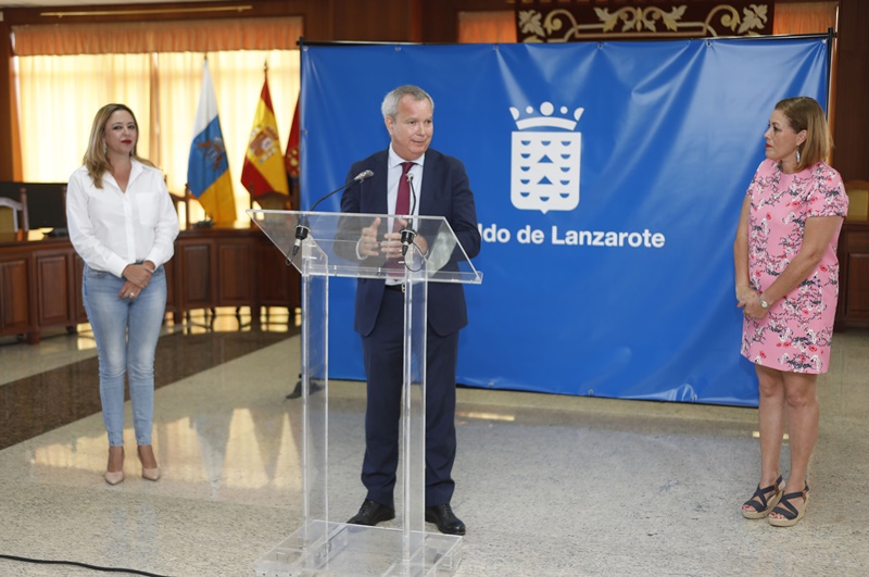 El consejero Franquis se desplazó hoy hasta la capital de Lanzarote, y más concretamente a la sede del Cabildo, donde firmó con la alcaldesa de Arrecife, Ástrid Pérez, y ante la presidenta insular, María Dolores Corujo un Protocolo de Actuación para la edificación en el barrio de Maneje (Arrecife) de 200 nuevas viviendas de promoción pública para las familias demandantes de vivienda residentes en este municipio, y otras 200 más de protección oficial en régimen privado.