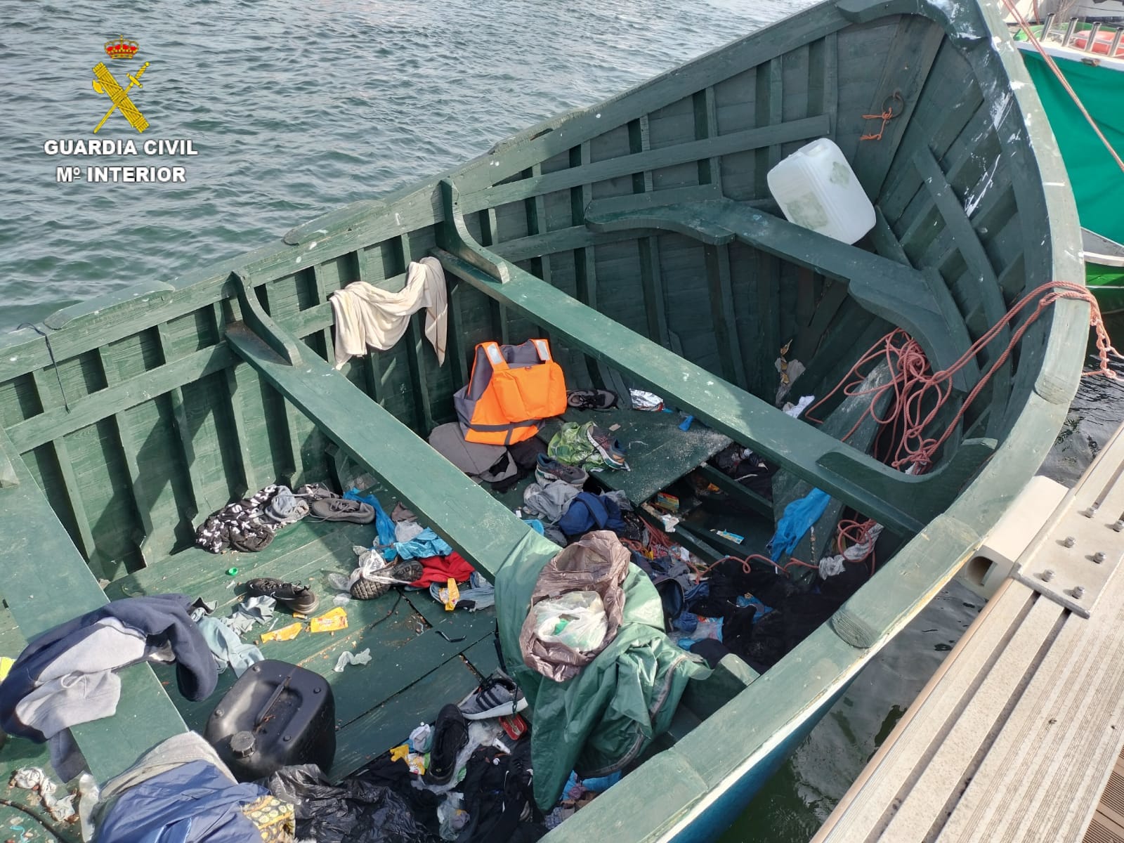Una vez la embarcación llegó al muelle, los agentes de la Guardia Civil que habían observado a uno de los ocupantes manejando el timón de la misma, en el momento del desembarque se procede a la identificación y posterior detención, encontrando entre sus pertenencias materiales útiles para la navegación como un GPS y diversa documentación la cual está siendo objeto de estudio. Además la patera, fabricada en madera y con dos motores fueraborda y con 47 personas a bordo (entre ellos un menor), no cumplía con la normativa vigente para la navegación incluso llevando todas las inscripciones y matrícula borradas dificultando así la investigación posterior en cuanto a punto de salida y titularidad.