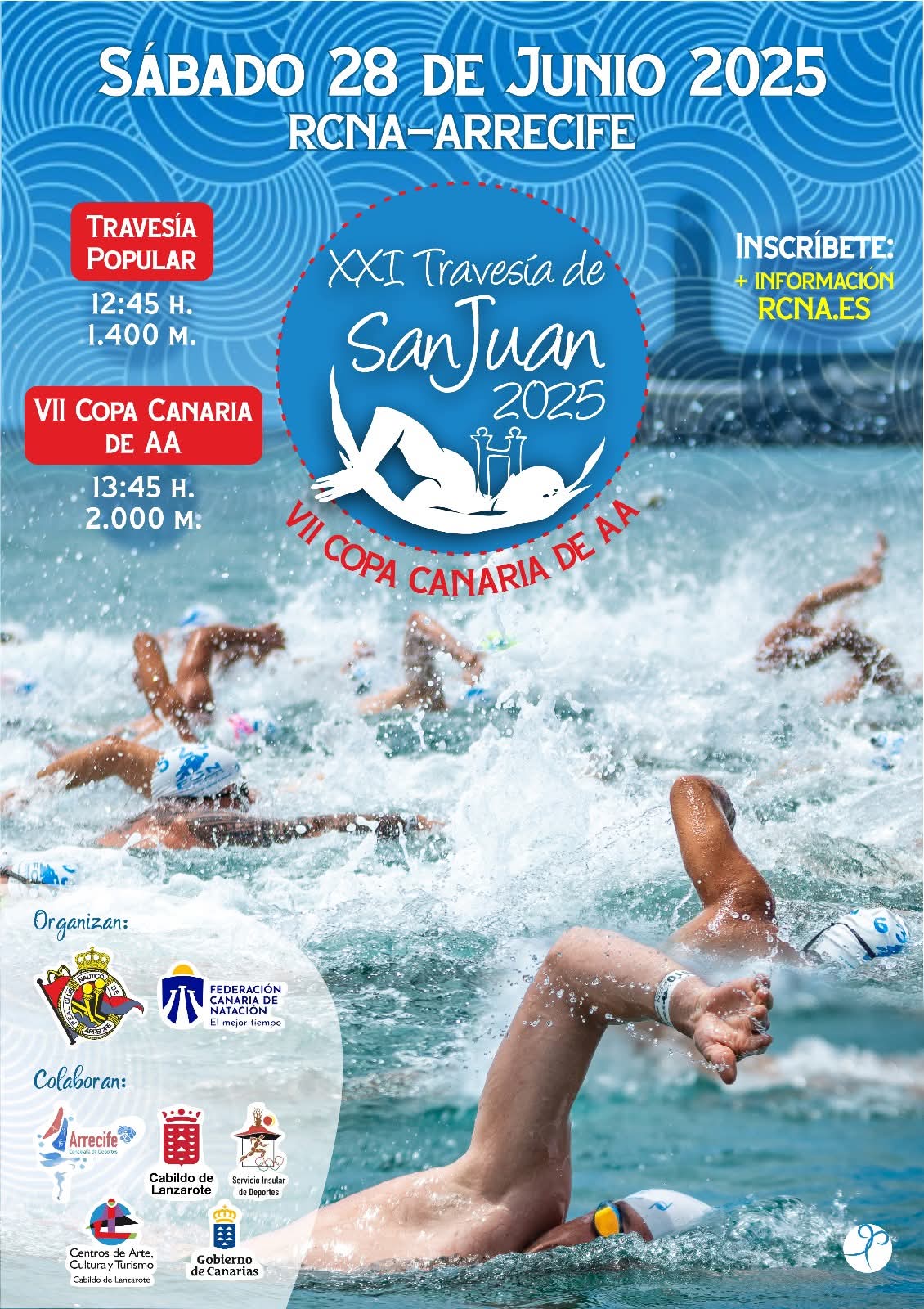 Las inscripciones para participar en la XXI Travesía a Nado San Juan 2025 se encuentran abiertas, y el número total de plazas que pone a disposición la organización es de 350. Las inscripciones se pueden realizar a través de la web del Real Club Náutico de Arrecife (www.rcna.es) o a través del enlace de Tripasión Eventos (https://tripasioneventos.com/event/travesia-a-nado-san-juan-real-club-nautico-de-arrecife/).