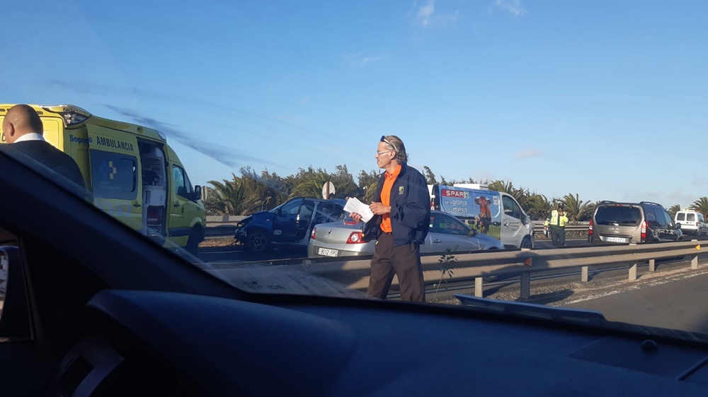 A primera hora de esta mañana, sobre las 7.45 horas, ocurría un accidente en la LZ-2 por la salida de Playa Honda dirección Puerto del Carmen, provocando grandes retenciones en esa vía y en la Circunvalación, afectando a los vehículos que trataban de llegar al sur de la isla.