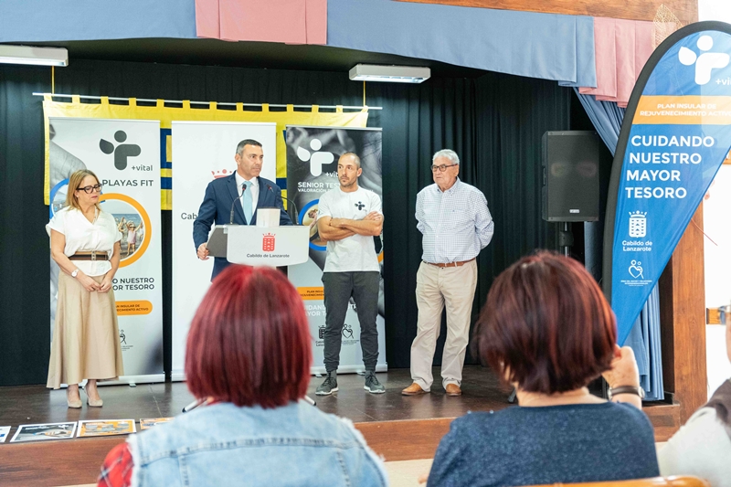 El presidente del Cabildo de Lanzarote, Oswaldo Betancort, a través del Área del Mayor y Relaciones Interpersonales, que dirige Nori Machín, ha presentado este viernes dos nuevos proyectos, Playas Fit y Senior Test, enmarcados en el Plan Insular de Rejuvenecimiento Activo, Plan +Vital, los cuales comenzarán a partir del próximo día 1 de abril.
