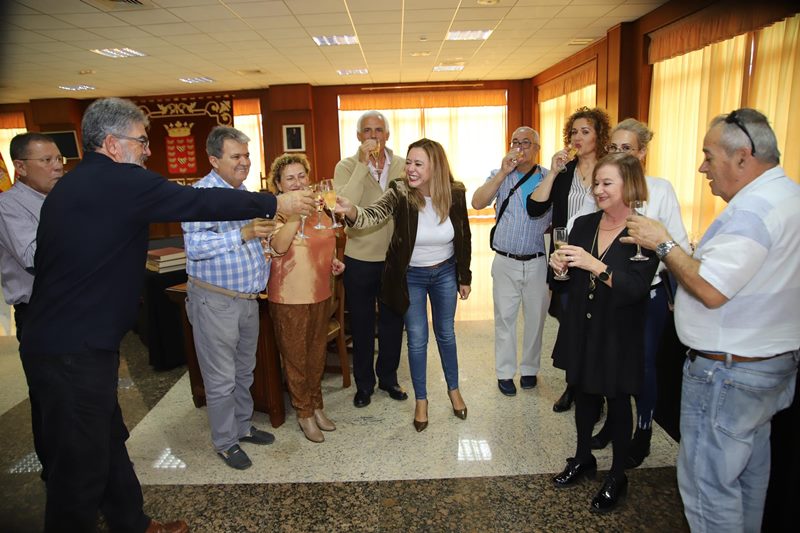 La presidenta del Cabildo de Lanzarote, María Dolores Corujo, junto a la consejera de Vivienda y Recursos Humanos, Rosa Callero, ha presidido un brindis con los trabajadores y trabajadoras del Cabildo jubilados, así como con los familiares de quienes han fallecido.