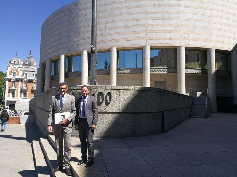 El alcalde de Haría, Marci Acuña, se desplazó este viernes a Madrid, acompañado del senador por la Isla, Joel Delgado, con el fin de reclamar a la Dirección General de Costas una solución definitiva para la anhelada reparación de la pasarela de la playa de La Garita, en Arrieta.