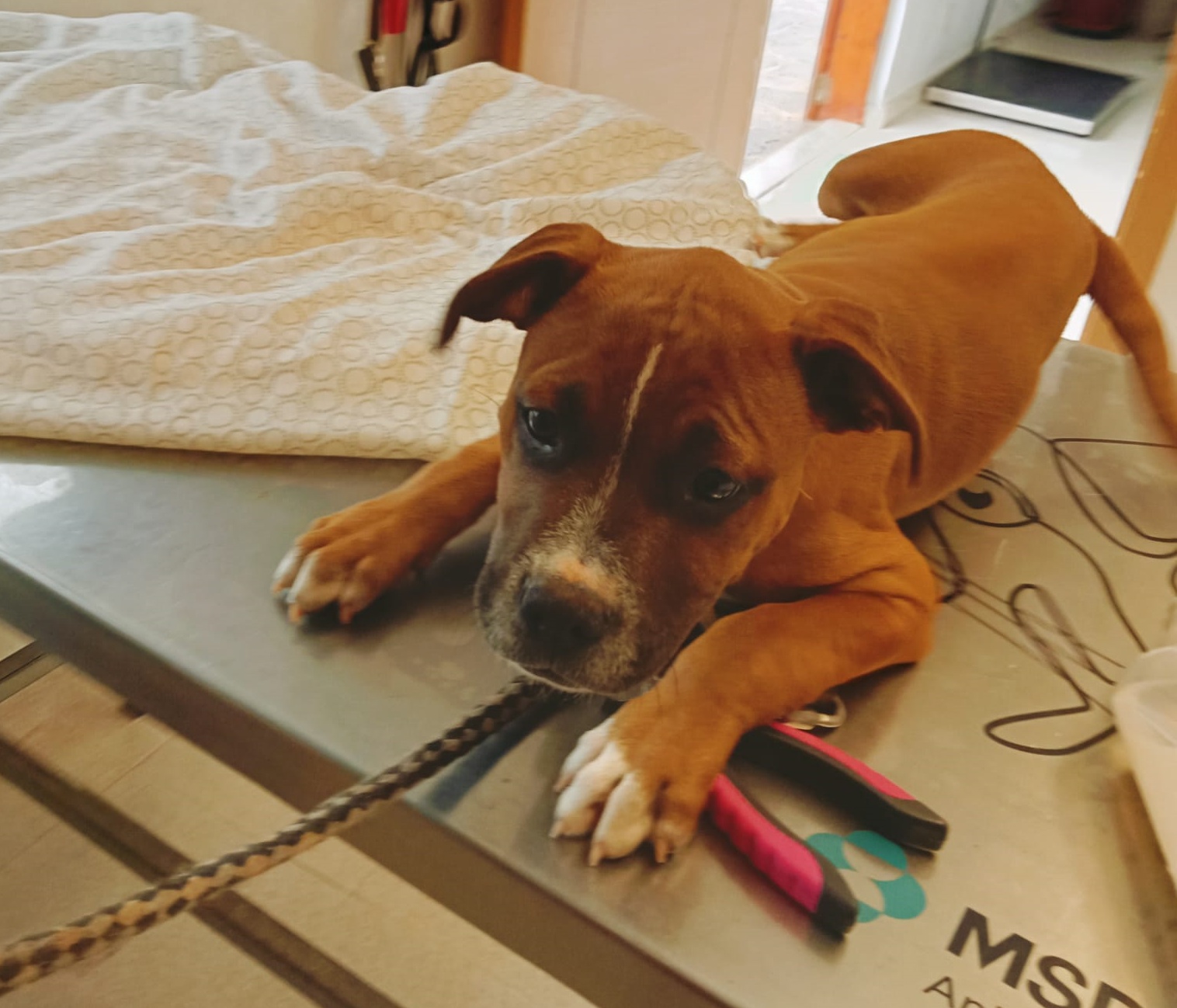 En un comunicado explican que “el pasado lunes día 20 de mayo alguien que pasea por la zona de los Jameos del agua, observa como un cachorro de perro, se encuentra, en mitad de la nada y atado a una piedra, en muy mal estado. Está totalmente deshidratado, puesto que no le han dejado comida, ni agua. Podría haber muerto de sed. El animal cojea y se queja de dolor, posteriormente se comprobará, que su cadera está rota. También carece de chip”.
