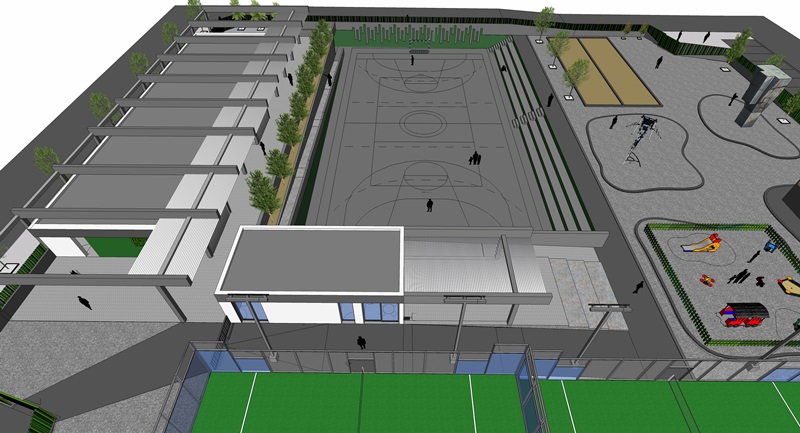 Como resultado de la intervención en la parcela de referencia, se obtendrán edificios aislados de una planta sobre rasante. En los espacios exteriores se ejecutarán una cancha deportiva multiusos con graderío, dos canchas de padel, dos canchas de bolas, dos espacios destinados a juegos de niños, un skate-park, amplios espacios libres y jardines. En la cubierta del edificio y en un cuarto de instalaciones específico bajo rasante se dejan áreas de reserva para instalaciones y previsión de implantación de paneles fotovoltaicos. Los accesos a los edificios se hacen desde dentro de la parcela dependiendo del uso y las necesidades de cada espacio según la documentación gráfica.