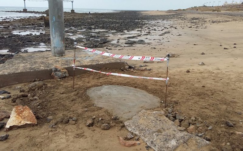 Aena ya ha tapado con hormigón los cables de alta tensión que habían quedado al descubierto en la playa cercana al aeropuerto.