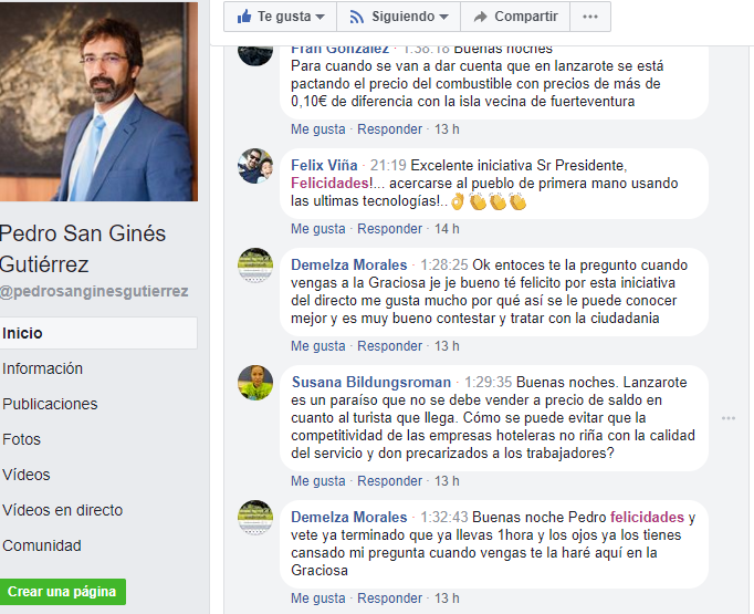 El presidente del Cabildo de Lanzarote, Pedro San Ginés, se puso en la tarde de ayer a disposición de los ciudadanos de manera online a través de su página oficial de Facebook, para que sin vergüenzas ni reparos le preguntaran todas las dudas que se les presentaran, además de hacer sugerencias sobre la gestión de la institución y las cosas importantes de la isla en general.