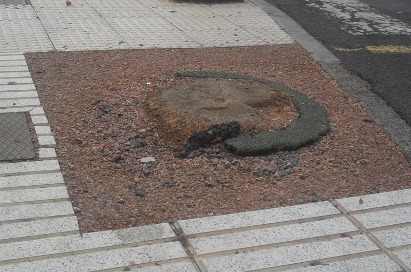 La realidad un año y medio después, continúa Alternativa Ciudadana, “es que no sólo no se ha plantado ningún tipo de árbol, sino que lo que queda en la zona son los restos de las palmeras sobresaliendo sobre la acera”. “Estas circunstancias están generando serios inconvenientes a los transeúntes, que ya en varias ocasiones han tenido diversos percances con golpes en los pies y caídas sobre la acera. También acarrea dificultad a la hora del desplazamiento a personas en sillas de ruedas”, aseguran.