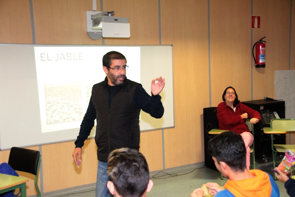 La primera charla tuvo lugar a las 08.00 horas con la presencia del concejal de Medio Ambiente Manuel Hernández Noda. Fue impartida por el técnico de la Reserva de la Biosfera Juan Cazorla, el cual explicó las bondades de nuestro jable y de la marina. "Es posible un territorio sostenible y por lo tanto un turismo más respetuoso, todo depende de nosotros", así se mostraba Cazorla ante la mirada atenta de medio centenar de estudiantes.