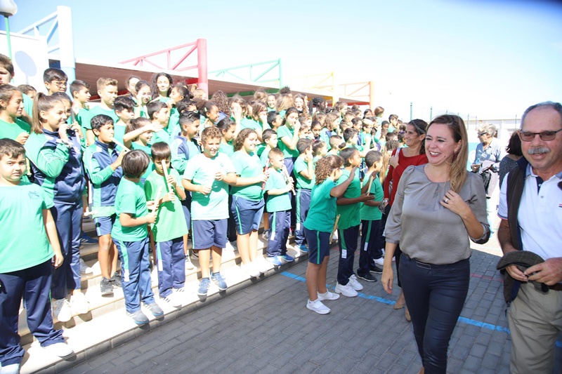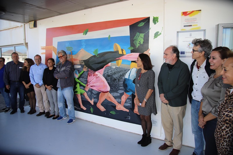 Tras una presentación y una actuación musical por parte de los alumnos y alumnas del centro, la presidenta y el director de la Fundación César Manrique, Fernando Gómez Aguilera, descubrieron una placa conmemorativa junto al mural.