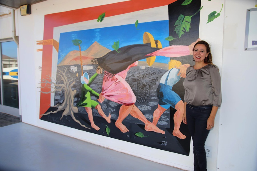 Alumnos del colegio de Argana presentan una réplica del mural "El Viento" de Manrique