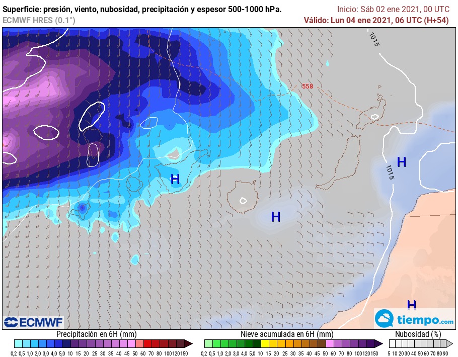 Según la predicción del ECMWF, habrá viento fuerte el miércoles y el jueves que provocará un temporal marítimo en zonas donde no suele darse.