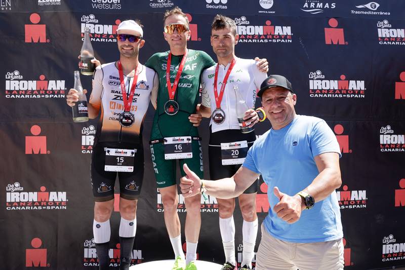 El consejero de Deportes, Juan Monzón, fue el encargado de ponerle la medalla al ganador de la categoría masculina poco antes de las 8 horas y media. "El esfuerzo, la lucha contra el calor y el viento, y una actuación soberbia en las tres modalidades le han permitido entrar en el libro de ganadores de IRONMAN Lanzarote", sostuvo el consejero, quien felicitó al triatleta y le deseó "la mayor de las suertes en sus proyectos futuros".