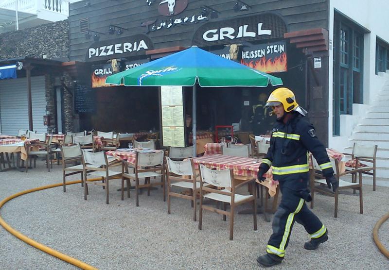 Un restaurante de la Avenida Marítima de Playa Blanca sufrió este miércoles un incendio que, pese a su aparatosidad, afortunadamente sólo dejó daños materiales. El fuego se declaró sobre las 14:00 horas y los bomberos tardaron unas dos horas en sofocarlo.