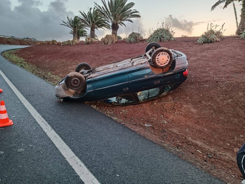 La localidad de Playa Honda, concretamente a la altura de la entrada del aeropuerto, era escenario esta mañana, hacia las seis, de un nuevo vuelco.