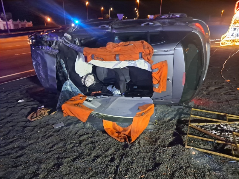 Hacia las dos y veinte de la madrugada, el Centro Coordinador de Emergencias y Seguridad (CECOES) 1-1-2 del Gobierno de Canarias recibía una alerta en la que informaban del vuelco lateral de un turismo a la salida de Arrecife.