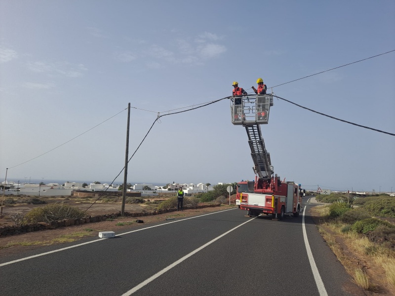 Por otra parte, también se ocuparon de un cable caído en una vía de Tahíche que invadía dos carriles y que los Bomberos sujetaron con cabos y bridas hasta que la zona dejó de ser peligrosa.