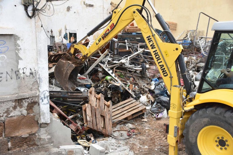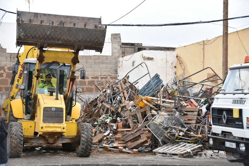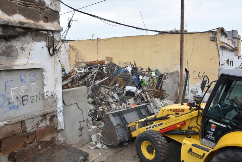 Lancelot Televisión ha querido captar las imágenes del momento en que los operarios del Ayuntamiento de Arrecife tiraban este viernes por la mañana un muro situado en un solar en la calle León y Castillo, la conocida zona de Las Rapaduras, para retirar los kilos de basura acumulada que presuntamente un vecino que sufre una patología psicológica ha estado tirando durante varios meses.
