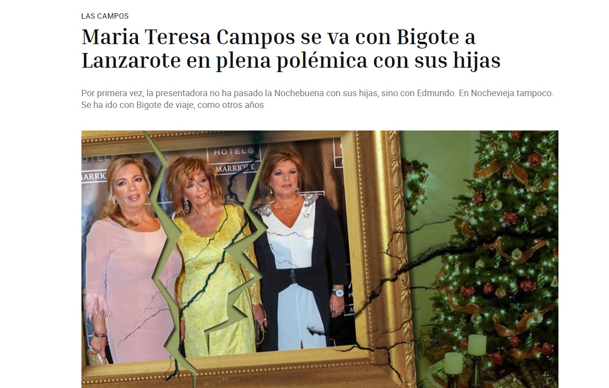 En aquel entonces Lancelot Digital publicaba que “La conductora de Telecinco y su acompañante disfrutarán en la isla de unos días de relax y desconexión previos a retomar su actividad laboral en 2017, ella en su programa televisivo 'Qué tiempo tan feliz' y él como colaborador en distintas galas de humor”, y continuaba. “La periodista ha cogido un avión unos días después del estreno del programa ‘Las Campos 2’, donde María Teresa y sus hijas, Carmen y Terelu, han compartido con sus seguidores cómo suelen pasar la Navidad. Además, nos han dejado ver cómo decoran sus casas, así como las manías que tienen al elaborar sus platos culinarios o comprar lotería”.